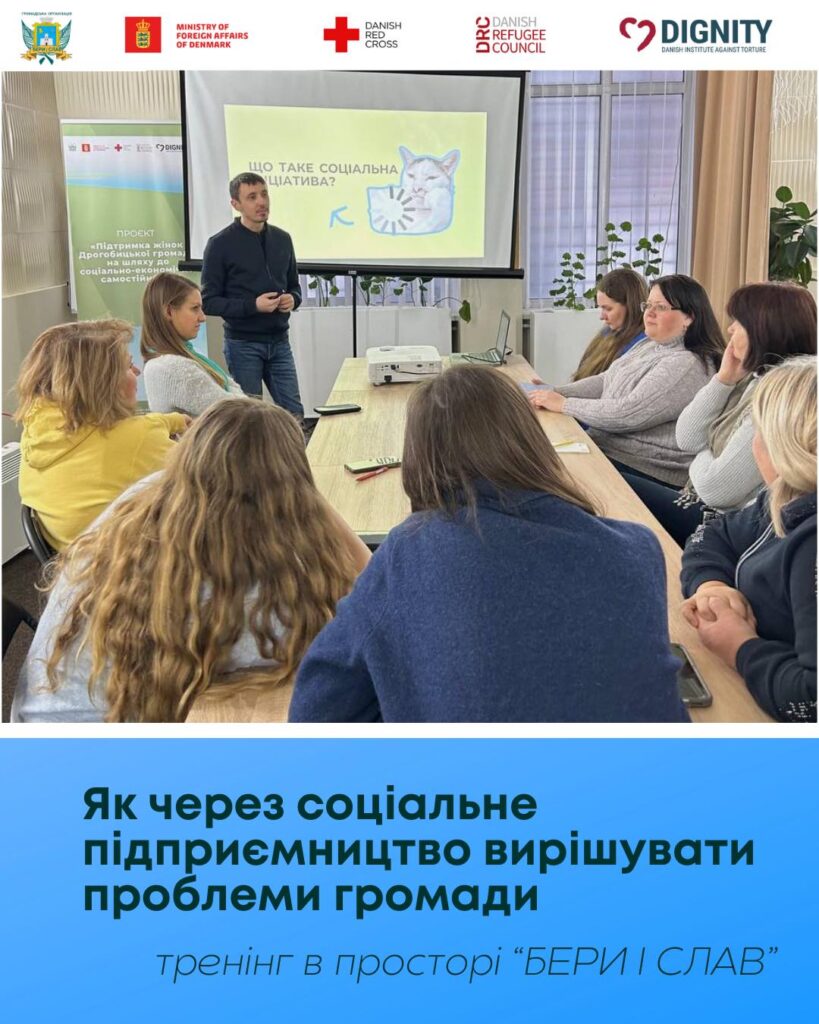 Серію тренінгів з соціального підприємництва організовує ГО “Бери і слав” в рамках проєкту, що реалізується Консорціумом на чолі з Данським Червоним Хрестом у партнерстві з Данською радою у справах біженців та Dignity за підтримки Міністерства закордонних справ Данії.